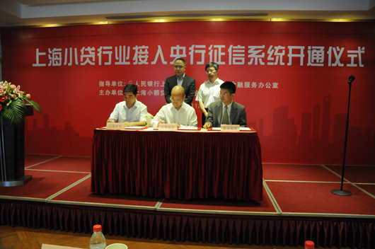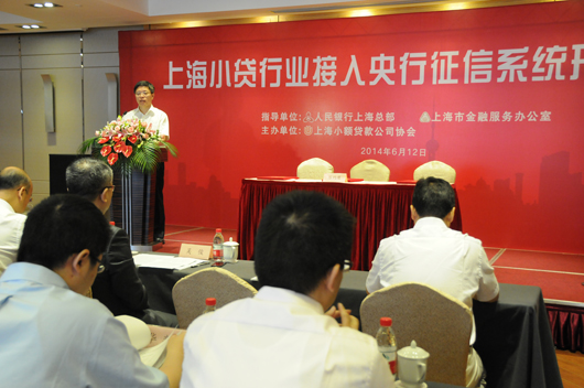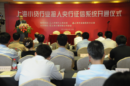 2014年6月12日上午,上海小贷行业接入央行征信系统开通仪式在大众大厦举行。开通仪式由上海市金融服务办公室、人民银行上海总部指导,上海小额贷款公司协会主办。上海市金融服务办公室副主任吴俊、人民银行上海总部金融服务二部副主任姜威、上海小贷协会会长杨国平等领导出席仪式并讲话,市金融办、人民银行上海总部相关部门、上海资信公司、上海东方有线数据服务公司等接入系统建设方、上海部分小额贷款公司代表、新闻记者等50多人出席了开通仪式。仪式现场为长宁长诚、嘉定及时雨、闸北市北高新3家小额贷款公司颁发了“首批接入单位”铭牌,开通了央行征信系统查询权限。杨国平会长代表市小贷协会与上海资信公司、上海东方有线数据服务公司签署了《关于进一步推进上海小贷行业接入央行征信系统建设的合作备忘录》。开通仪式由小贷协会秘书长李伟涛主持。