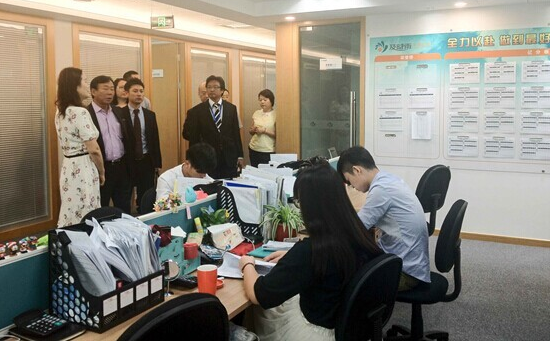 2014年9月10日,在上海小贷协会会长、大众交通集团董事长杨国平与小贷协会秘书长李伟涛带领下下,日本非银巨头SMBC消费金融株式会社董事东樟先生一行莅临及时雨小贷公司参观考察。