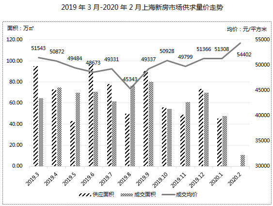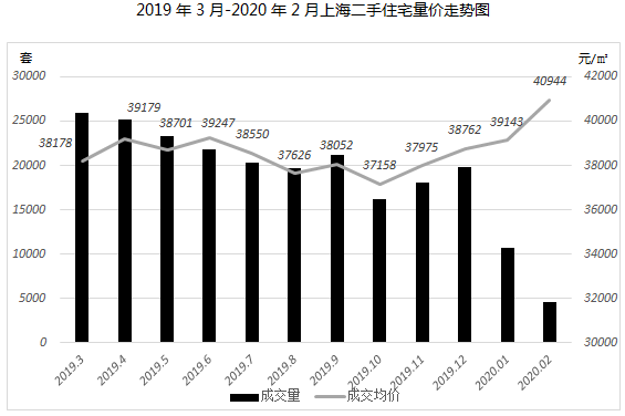 2020年2月,疫情持续影响下,上海二手房市场成交进入冰冻期,二手房销售基本停滞,中介带看困难,客户看房意愿低迷,2月成交量环比下跌约6成。成交价格方面,环比上涨4.6%,价格趋于平稳。由于短期内疫情的影响,消费者的购房需求被延后,交易周期拉长,成交节奏继续放缓,预计疫情结束后,市场上被压制的需求将迎来集中释放,二手房成交量将有一波报复性反弹。